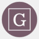 Aubergine Eggplant White Framed Initial Monogram Classic Round Sticker