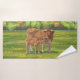 Aubrac Cow & Cute Calf in Spring Pasture Bath Towel Set
