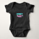 I ordered an all-cotton T-shirt with the same logo for myself and one for the newest addition to my extended family. The T-shirt arrived first, but I left on vacation before the baby's all-cotton onesie was delivered to me. After I returned home, I feared that the newborn for whom it was intended may have already outgrown it; but, fortunately, that was not the case as you can see from the photo. The printing and colors turned out just as I envisioned them: perfection.