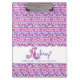 Pretty hand drawn letter A monogram name and meaning girls clipboard. Ideal for a personalised gift for a girl who has a name that starts with the letter A. This example reads Aubrey Noble strength. Bright, organised and clever or you can customise the text with your own if required. Makes a unique Birthday or Christmas gift. If you need help with your own personalised name please contact me. © Letter A typographical hearts and flowers drawing and pattern in pastel shades of pink and purple is uniquely created by Sarah Trett. www.sarahtrett.com for www.mylittleeden.com