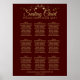This 9 table wedding seating chart will make it easy for your guests to find their seats at your wedding reception. Features elegant gold lettering with a vintage faux foil flourish or filigree on a chocolate brown or auburn coloured background.
