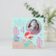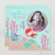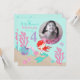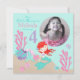 Little mermaid fourth birthday invitation card with underwater creatures.