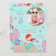 Little mermaid third birthday invitation card with underwater creatures and a photo insert template.