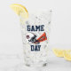 This spirited glass tumbler proudly showcases support for Auburn University on game day! It features a classic football helmet with the iconic blue "AU" logo at its centre, perfectly capturing the excitement of game day. Above and below the helmet, the words "GAME" and "DAY" are boldly presented in blue, arched lettering. A vibrant orange pennant extends from behind the helmet, proudly displaying a stylised tiger mascot face and the word "TIGERS." This impactful and recognisable design is ideal for enjoying your favourite beverage while representing allegiance to the Auburn Tigers.