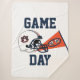 This cosy blanket proudly showcases support for Auburn University on game day! It features a classic football helmet with the iconic blue "AU" logo, centred between the words "GAME" and "DAY" in bold blue lettering. A vibrant orange pennant extends from behind the helmet, proudly displaying a stylised tiger mascot face and the word "TIGERS." This impactful and recognisable design is ideal for staying warm while cheering on the Auburn Tigers, whether at home or at the stadium.