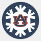 This design pattern features Auburn University's emblematic "AU" logo in bold navy blue with an orange outline. The word "Auburn" appears in stylised, uppercase navy blue letters with orange accents, providing a prominent contrast against the white background. An additional graphic of a tiger's eyes, enclosed in an oval shape with an orange border, reinforces Auburn’s iconic mascot. Scattered across the design are minimalist starburst shapes and small dots in navy blue, adding a festive and dynamic touch that complements the university's spirit and colours.