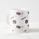 This design pattern features Auburn University's emblematic "AU" logo in bold navy blue with an orange outline. The word "Auburn" appears in stylised, uppercase navy blue letters with orange accents, providing a prominent contrast against the white background. An additional graphic of a tiger's eyes, enclosed in an oval shape with an orange border, reinforces Auburn’s iconic mascot. Scattered across the design are minimalist starburst shapes and small dots in navy blue, adding a festive and dynamic touch that complements the university's spirit and colours.