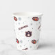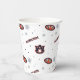 This design pattern features Auburn University's emblematic "AU" logo in bold navy blue with an orange outline. The word "Auburn" appears in stylised, uppercase navy blue letters with orange accents, providing a prominent contrast against the white background. An additional graphic of a tiger's eyes, enclosed in an oval shape with an orange border, reinforces Auburn’s iconic mascot. Scattered across the design are minimalist starburst shapes and small dots in navy blue, adding a festive and dynamic touch that complements the university's spirit and colours.