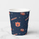This design pattern features Auburn University's emblematic "AU" logo in bold navy blue with an orange outline. The word "Auburn" appears in stylised, uppercase navy blue letters with orange accents, providing a prominent contrast against the white background. An additional graphic of a tiger's eyes, enclosed in an oval shape with an orange border, reinforces Auburn’s iconic mascot. Scattered across the design are minimalist starburst shapes and small dots in navy blue, adding a festive and dynamic touch that complements the university's spirit and colours.