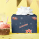 This design pattern features Auburn University's emblematic "AU" logo in bold navy blue with an orange outline. The word "Auburn" appears in stylised, uppercase navy blue letters with orange accents, providing a prominent contrast against the white background. An additional graphic of a tiger's eyes, enclosed in an oval shape with an orange border, reinforces Auburn’s iconic mascot. Scattered across the design are minimalist starburst shapes and small dots in navy blue, adding a festive and dynamic touch that complements the university's spirit and colours.