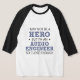 I may not be a hero, but I'm an Audio Engineer so close enough humourous word art in sans-serif and doodle cross-hatch font lettering in black and dark cold blue.