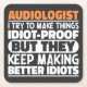 Funny Audiologist Sayings "Audiologist I Try To Make Things Idiot Proof But They Keep Making Better Idiots". Grab this Funny Audiologist design as a funny gifts for an awesome mum, dad or friend.