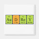 Audrey spelled out as Au D Re Y (Gold Deuterium Rhenium Yttrium) on a magnet for the scientist in you.