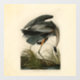 John James Audubon was one of the America's great naturalists, documenting hundreds of birds species with great precision as he made his way across America and drew in detail the wild birds of America. Audubon then published lithographs of his scientific drawings of the American birds, and this Great Blue Heron is among the best Audubon lithographs made by Audubon. The Great Blue Heron is actually a slate grey heron with blue tints and with striking markings- a black shoulder, white face, and a white crown with black stripes. It's a large heron - the largest in theU.S. The Great Blue Heron has a bill that is strong, long and yellow. The colours of the heron's thighs are a chestnut brown. The Audubon great blue heron is standing in the marsh, with marsh grass around it, and it is obviously looking for fresh fish, as its great yellow beak is turned down towards the water. This Audubon bird print of the Great Blue Heron is a beautiful bird print, and a classic image from the early 1800s.