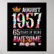 August 1957 65th Birthday 65 Years Awesome Floral Poster