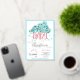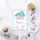 Framed with a bright teal border, this invitation stands out as a piece of art, making it a beautiful keepsake for both you and your guests. The details of your event are presented in a chic and easy-to-read format, ensuring all the important information is clearly communicated while maintaining the invitation’s stunning visual appeal.