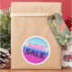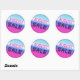 August sale round sticker with a holographic glossy gradient, bright pink colour and black dotted font