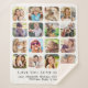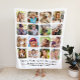 Create a personalised keepsake white sherpa blanket for a favourite aunt featuring 16 rounded square frames holding photos of her nieces and nephews, family, pets, or other special memories and two lines of customisable text, such as "We Love You Aunt" and the names of her family members, in elegant white typography.