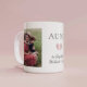Personalised mug for the best aunt ever featuring 2 photos of her nieces and nephews, "AUNT" or "AUNITIE" in elegant typography and a rose gold heart. Add the names of her nieces and nephews.