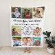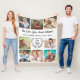 A white keepsake fleece blanket for a favourite aunt featuring a heart-shaped frame with "best Aunt ever" in the middle. Add 8 photos of her nieces, nephews, family, pets, etc., personalise "We Love You" to suit your occasion (e.g., "Happy Mother's Day," "Happy Birthday," or "Merry Christmas), add her family's first names and customise whether she is call "Aunt," "Auntie," "Tia," etc.