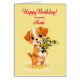 A cute birthday card for an aunt. A cuddly puppy holding a bunch of flowers and saying 'Happy Birthday'. Celebrate a birthday with this irresistible card showcasing a sweet puppy holding a bunch of daisy flowers, perfect for melting hearts.