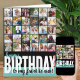 Create your own big happy birthday card. The photo template is ready for you to add 31 of your favourite pictures, 30 of which are displayed in square / instagram format in a simple grid style photo collage and the main one is in frameworthy portrait format on the inside. The front of the birthday card is lettered with modern oversized typography and brush script. It currently reads "happy birthday to my favourite aunt" with colour block styling in light teal, black and white. You can edit the personalised wording on the front and you can also customise the greeting inside.