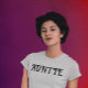 Kiwis wear all black as the t shirt is with Green lettering to match the environment and yellow for joy and purple thistle to match my hair.