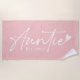 Towel with the text "Auntie" in white in a handwritten style script font with a little heart at the end and the year below. Light pink or custom colour background.