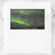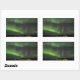 Sticker with green rays of aurora borealis (northern lights) in the night sky over a frozen lake in Lapland.