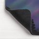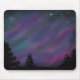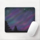 Beautiful Aurora Borealis, Northern Lights, mousepad. This aurora was digitally hand-painted with shades of purple, pink, teal, jade, and blue, with black hills and whimsical trees.