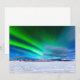 Magic green bands of Northern Lights Aurora borealis on clear night sky with lots of stars over frozen Lake Laberge, Yukon Territory, Canada, illuminated by full winter moon.