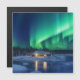 Nice magnet with beautiful Aurora borealis over winter cabin.