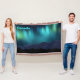 A multi-coloured, fractal rendering of the aurora borealis, or Northern Lights, superimposed on a digital painting of snow-covered mountains. Customisable text reading "Canada" also appears. The aurora borealis (or Northern Lights), named after the Roman goddess of dawn, Aurora, and the Greek name for the north wind, Boreas. Many cultural groups have legends about the lights. In mediaeval times, the occurrences of auroral displays were seen as harbingers of war or famine. The Maori of New Zealand shared a belief with many northern people of Europe and North America that the lights were reflections from torches or campfires. The Menominee Indians of Wisconsin believed that the lights indicated the location of manabai'wok (giants) who were the spirits of great hunters and fishermen. The Inuit of Alaska believed that the lights were the spirits of the animals they hunted: the seals, salmon, deer and beluga whales. Other aboriginal peoples believed that the lights were the spirits of their people. The connection between the Northern Lights and sunspot activity was suspected as far back as 1880. Thanks to research conducted since the 1950's, we now know that electrons and protons from the sun are blown towards the earth on the 'solar wind'. (Note: 1957-58 was International Geophysical Year and the atmosphere was studied extensively with balloons, radar, rockets and satellites. Rocket research is still conducted by scientists at Poker Flats, a facility under the direction of the University of Alaska at Fairbanks. The temperature of the sun's atmosphere is millions of degrees. At this temperature, collisions between gas molecules are frequent and explosive. Free electrons and protons are thrown from the sun's atmosphere by the rotation of the sun and escape through holes in the magnetic field. carried eartward in the solar wind, the charged particles are largely deflected by the earth's magnetic field. However, the earth's magnetic field is weaker at either pole and therefore some particles enter the earth's atmosphere and collide with gas particles in the higher layers (thermosphere). These collisions emit light that we perceive as the dancing lights of the north (and the south). Most aurorae occur in a band known as the auroral zone,which is typically 3° to 6° in latitudinal extent and at all local times or longitudes. The auroral zone is typically 10° to 20° from the magnetic pole defined by the axis of the Earth's magnetic dipole. During a geomagnetic storm, the auroral zone will expand to lower latitudes. The diffuse aurora is a featureless glow in the sky which may not be visible to the unaided eye even on a dark night and defines the extent of the auroral zone. The discrete aurora are sharply defined features within the diffuse aurora which vary in brightness from just barely visible to the unaided eye to bright enough to read a newspaper at night. Discrete aurorae are usually observed only in the night sky because they are as bright as the sunlit sky. Aurorae occasionally occur poleward of the auroral zone as diffuse patches or arcs (polar cap arcs, which are generally invisible to the unaided eye. Because the phenomena occurs near the magnetic poles, northern lights have been seen as far south as New Orleans in the western hemisphere, while similar locations in the east never experience the mysterious lights. However the best places to watch the lights (in North America) are in the northwestern parts of Canada, particularly the Yukon, Nunavut, Northwest Territories and Alaska. Auroral displays can also be seen over the southern tip of Greenland and Iceland, the northern coast of Norway and over the coastal waters north of Siberia. Southern auroras are not often seen as they are concentrated in a ring around Antarctica and the southern Indian Ocean. Auroral displays appear in many colours. Variations in colour are due to the type of gas particles that are colliding. The most common auroral colour, a pale yellowish-green, is produced by oxygen molecules located about 60 miles above the earth. Rare, all-red auroras are produced by high-altitude oxygen, at heights of up to 200 miles. Nitrogen produces blue or purplish-red aurora. The lights appear in many forms from patches or scattered clouds of light to streamers, arcs, rippling curtains or shooting rays that light up the sky with an eerie glow. Curtain-like structures show field lines in the Earth's magnetic field . The auroras that resulted from the "great geomagnetic storm" on both 28 August and 2 September 1859 are thought the most spectacular in recent recorded history. It was reported by the New York Times that in Boston on Friday 2 September 1859 the aurora was "so brilliant that at about one o'clock ordinary print could be read by the light". The aurora is thought to have been produced by one of the most intense coronal mass ejections in history, very near the maximum intensity that the Sun is thought to be capable of producing. It is also noteable for the fact that it is the first time where the phenomena of auroral activity and electricity were unambiguously linked. This insight was made possible not only due to scientific magnetometer measurements of the era, but also as a result of a significant portion of the 125,000 miles (201,000 km) of telegraph lines then in service being significantly disrupted for many hours throughout the storm. Some telegraph lines, however, seem to have been of the appropriate length and orientation to produce a sufficient geomagnetically induced current from the electromagnetic field to allow for continued communication with the telegraph operator power supplies switched off. Both Jupiter and Saturn have magnetic fields much stronger than Earth's (Jupiter's equatorial field strength is 4.3 gauss, compared to 0.3 gauss for Earth), and both have large radiation belts. Auroras have been observed on both, most clearly with the Hubble Space Telescope. Uranus and Neptune have also been observed to ha