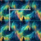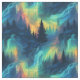 A seamless pattern featuring the blue-green and yellow hues of the aurora borealis, with silhouettes of pine trees scattered throughout. The design captures the ethereal beauty of the northern lights against a serene forest backdrop.