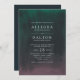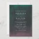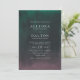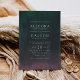 Dramatically elegant in shades of midnight blue, jade green and rich purple, our Aurora wedding invitation takes its cue from the northern lights or aurora borealis, the atmospheric phenomenon that lights up the night sky in brilliant hues. Invitation cards feature a watercolor gradient wash in green and purple on a midnight sky background, with your wedding details displayed in elegant white lettering. Cards reverse to solid midnight blue.
