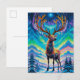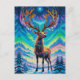 The intricate details in the stag's fur, adorned with cosmic patterns, evoke a sense of mystery and wonder, appealing to those drawn to fantasy, wildlife, or celestial art. The brilliant shades of blues, greens, purples, and golds in the sky echo the magic of the northern lights, offering a piece that is both vibrant and calming.