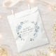 This bridal shower favour bag features elegant dusty blue and white florals and an elegant minimalist font. This favour bag is perfect for any simple and classic event.