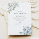 This baby shower invitation features elegant dusty blue and white florals and an elegant minimalist font. This invite is perfect for any simple and classic event.