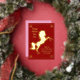 Our Auspicious Horse Chinese New Year Foil Card shows a gold foil horse standing on two legs in a triumphant pose. The image is set on a red background and surrounded by a gold border. All text are customisable.