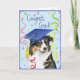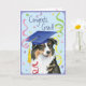 Congratulate your favourite graduate with a gift featuring a cute, happy Australian Shepherd graduate wearing a mortarboard amid a flurry of confetti.