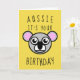 cute koala bear character punny birthday greeting card: "Aussie It's Your Birthday"