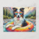 Adorable Tri Colour Australian Shepherd in a rainbow coloured float AI generated art