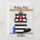 Black and white hoops with aussie rules football hanging in a changing room fully customisable with your own name and number. on the reverse just change the details to your own party details to create unique soccer birthday party invitations. Great gift for any aussie rules footy player, or aussie rules football fan. We can make this product in any jersey colour combination just contact us through the giftsbonanza store