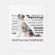 This Australian Shepherd (with a tail!) fleece blanket, featuring the traits and personality of the breed, is a great gift for any Aussie lover.