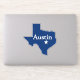 The Austin, Texas Capital City State Map Sticker: A cool custom-cut contour vinyl sticker with an outlined Texas state map and the iconic Lone Star of Texas placed directly over Austin's place on the map. Makes a cool bumper sticker or home decoration for proud residents of Austin, the Texas state capital in central Texas!
