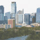 Painted city skyline of Austin, Texas designed by Shelby Allison
