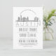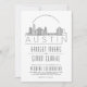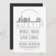 A unique wedding invitation for a marriage taking place in the beautiful city of Austin. This invitation features a stylised illustration of the city's unique skyline with its name underneath. This is followed by your wedding day information in a matching open lined style. On the reverse side of the invitation is a deep grey colour to complement the look and feel. All individual elements of the invite card are unlocked so feel free to change or add any details necessary by using the customisation function. You can add a photo to the reverse side and add a black and white filter to it. Matching RSVP cards, belly bands, tote bags, and more are available.