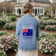 It's the Flag of Australia, or Australian Flag with the word AUSTRALIA underneath. Add your name, in white letters above the flag, for a personalised touch or a customised gift. The Australian flag shows the Union Flag in the upper left area and Sports the Southern Cross constellation all on a blue background. Fun to wear to a family reunion, club, or travel group.