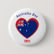 Australia day flag heart custom button. Happy Australia Day 26th January, Australian Flag, Australia Map, Heart, stars & fireworks. Funny Australia, Patriotic National Holiday Festive Poster for gifts and clothing design. Accessories > Buttons & Patches > Buttons. Memorial Gift, remembrance gifts, Festival Event decoration. #zazzlemade #artwork.