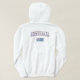 This item has the word "Australia" in a collegiate style type in an arc over the Australian flag, both in a distressed/worn style The flag has the Union Flag (or Union Jack) in the upper left corner and six stars on a blue field.